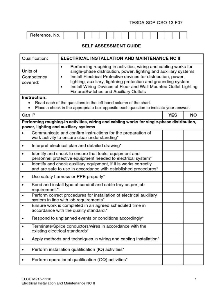 To attain the national qualification of electrical installation maintenance nc ii the candidate must demonstrate competence through project type assessment covering all the units.