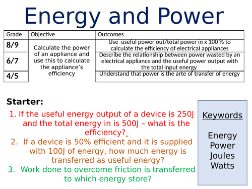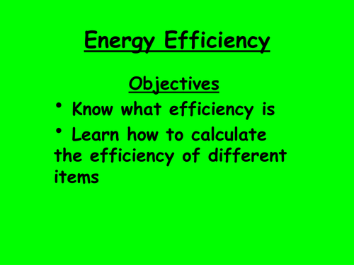 Secondly the use of the efficiency formula with pupils using a sheet and a set of cards to be placed around the classroom for them to gather information from.